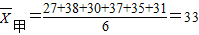| 甲 | 27 | 38 | 30 | 37 | 35 | 31 |