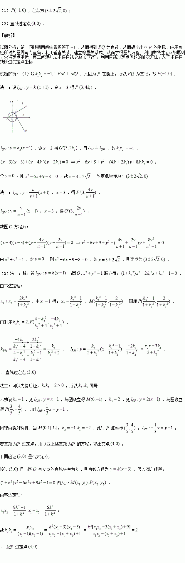 為直徑的圓,總過定點,并求出定點坐標.