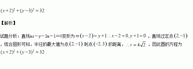 在平面直角坐標(biāo)系xOy中,以點(diǎn)(-2,3)為圓心且與直線mx-y-2m-1=0(m∈R)相切的所有圓中,半徑最大的圓的標(biāo)準(zhǔn)方程為 .