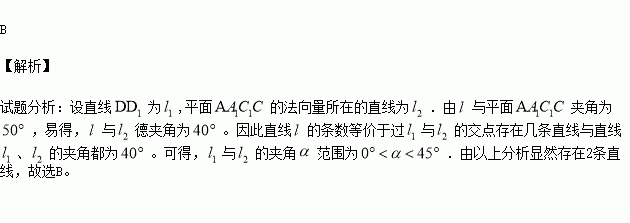 與BD1所成角為40°,且與平面A1ACC1所成角為50°,則