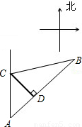 一艘船以20n mile/h的速度向正北方向航行,船在A處看見燈塔B在船的東北方向,1小時后船在C處看見燈塔B在船的北偏東750的方向上,這時船與燈塔的距離BC為 n mile.