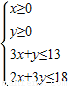 某企業(yè)生產(chǎn)甲、乙兩種產(chǎn)品,已知生產(chǎn)每噸甲產(chǎn)品要用A原料3噸,B原料2噸;生產(chǎn)每噸乙產(chǎn)品要用A原料1噸,B原料3噸,銷售每噸甲產(chǎn)品可獲得利潤5萬元,每噸乙產(chǎn)品可獲得利潤3萬元.該企業(yè)在一個生產(chǎn)周期內(nèi)消耗A原料不超過13噸,B原料不超過18噸.那么該企業(yè)可獲得最大利潤是