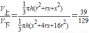 【答案】分析:根據(jù)條件分別設(shè)上、下底面半徑分別為r,4r,截面半徑為x,圓臺的高為2h,則有,從而尋求到x與r的關(guān)系,再由圓臺體積公式求解.