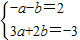 解得a=1,b=-3.
