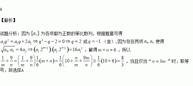 已知各項(xiàng)都為正數(shù)的等比數(shù)列{an}滿足a7=a6+2a5,若存在兩項(xiàng)