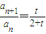 兩式相減:(2+t)(Sn+1-Sn)-t(Sn-Sn-1)=0,(2+t)an+1-tan=0,.即n≥2時,為常數(shù).(2分)