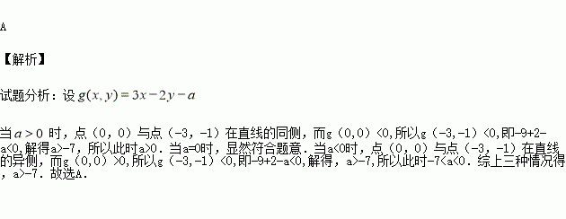 已知點(diǎn)(-3,-1)在直線3x-2y-a=0的上方,則a的取值范圍為 ( )