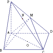 在四棱錐P-ABCD中,底面ABCD是矩形,PA⊥平面ABCD,PA=AD=4,AB=2,以AC的中點(diǎn)O為球心、AC為直徑的球面交DAPD于點(diǎn)M,交PC于點(diǎn)N。