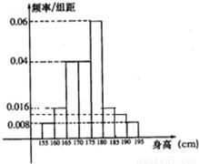 (3)由(2)知身高在[180,185]內(nèi)的人數(shù)為4人,設(shè)為a,b,c,d.身高在[190,195]的人數(shù)為2人,設(shè)為A,B.