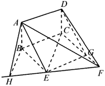 | (Ⅰ)證明:過點E作EG⊥CF并CF于G,連結(jié)DG, 可得四邊形BCGE為矩形。 又ABCD為矩形,所以AD∥EG, 從而四邊形ADGE為平行四邊形,故AE∥DG, 因為AE 所以AE∥平面DCF。 (Ⅱ)解:過點B作BH⊥EF交FE的延長線于H,連結(jié)AH, 由平面ABCD⊥平面BEFG,AB⊥BC, 得AB⊥平面BEFC,從而AH⊥EF, 所以∠AHB為二面角A-EF-C的平面角, 在Rt△EFG中,因為EG=AD= 所以 又因為CE⊥EF,所以CF=4,從而BE=CG=3, 于是BH=BE·sin∠BEH= 因為AB=BH·tan∠AHB, 所以當(dāng)AB為 |