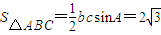 【答案】分析:由b2+c2=a2-bc,結(jié)合余弦定理,我們可以求出cosA的值,進(jìn)一步可以求出sinA值,又由,可以求出bc=8,代入三角形面積公式即可求出答案.