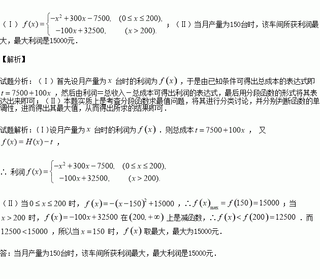 (Ⅱ)當(dāng)月產(chǎn)量為何值時,車間所獲利潤最大?最大利潤是多少元?