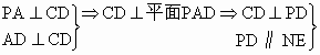 PAA垂直于矩形ABCD所在平面,M、N分別是AB、PC中點(diǎn),若∠PDA=45°.求證:MN⊥平面PCD.![]()