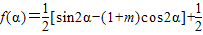 (2)把f(x)的解析式利用二倍角的正弦、余弦函數(shù)公式及積化和差公式化簡(jiǎn)得到關(guān)于sin2x和cos2x的式子,把x換成α,根據(jù)tanα的值,利用同角三角函數(shù)間的基本關(guān)系以及二倍角的正弦函數(shù)公式化簡(jiǎn)求出sin2α和cos2α的值,把sin2α和cos2α的值代入到f(α)=中得到關(guān)于m的方程,求出m的值即可.
