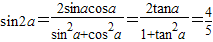 當(dāng)tanα=2,得:,,