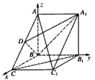 | (Ⅰ)解法一:∵AC1⊥平面A1DB,A1B ∴AC1⊥A1B, 又在正方形A1ABB1中,A1B⊥AB1,AC1∩AB1=A, ∴A1B⊥面AC1B1, 又B1C1 ∴ A1B⊥B1C1, 又在正方形BCC1B1中有,B1C1⊥BB1, 又BB1∩A1B=B, ∴B1C1⊥平面A1ABB1,B1C1 ∴平面A1ABB1⊥平面BCC1B1。 解法二:由已知可知三棱柱是直三棱柱, ∴四邊形A1ACC1為矩形, 又AC1⊥平面A1DB,A1D ∴AC1⊥A1D, 又D為AC的中點(diǎn), ∴由平面幾何知識(shí)可知,△A1AD~△ACC1, ∴AA1:AD=AC:CC1,AC2= AA1·CC1=AB2, ∴AC= ∴AB⊥BC, 又BC⊥BB1且BB1∩AB=B, ∴BC⊥平面A1ABB1,BC ∴平面A1ABB1⊥平面BCC1B1。 |