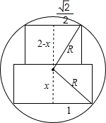 則${R}^{2}={x}^{2}+1=(2-x)^{2}+(\frac{\sqrt{2}}{2})^{2}$,