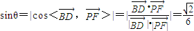 取平面PAC的法向量=(-1,1,0),(10分)設(shè)直線PF與平面PAC所成的角θ,則