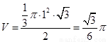 如圖是某幾何體的三視圖,其中正視圖是腰長為2的等腰三角形,俯視圖是半徑為1的半圓,則該幾何體的體積是_____________.