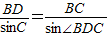 【答案】分析:根據(jù)題中條件,在△ABD中先由余弦定理求出cosA,利用同角關(guān)系可求sinA,利用正弦定理可求sin∠BDC,然后在△BDC中利用正弦定理求解sinC即可