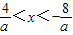 解答:解:∵|ax+2|<6,∴-6<ax+2<6,-8<ax<4