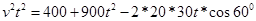 某港口要將一件重要物品用小艇送到一艘正在航行的輪船上,在小艇出發(fā)時(shí),輪船位于港口的O北偏西30°且與該港口相距20海里的A處,并正以30海里/小時(shí)的航行速度沿正東方向勻速行駛.假設(shè)該小艇沿直線方向以v海里/小時(shí)的航行速度勻速行駛,經(jīng)過t小時(shí)與輪船相遇.