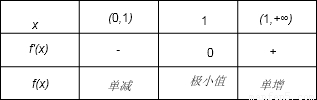 由上表可知,函數(shù)f(x)單調(diào)遞減區(qū)間是(0,1),單調(diào)遞增區(qū)間是(1,+∞)