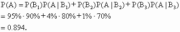 95%,二等品占4%,三等品占1%,它們能工作5 000小時(shí)的概率分別為90%,80%,70%,求任取一個(gè)元件能工作5 000小時(shí)以上的概率.