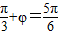 因為0<φ<π,,,φ=…(5分)