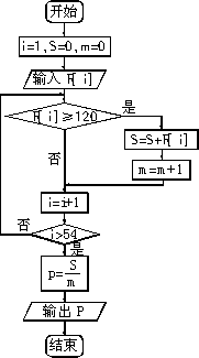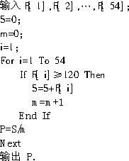 高中三年級一班共有54名同學(xué)參加考試,其成績已給出,請你設(shè)計(jì)算法,將成績優(yōu)秀(規(guī)定120分以上,包括120分為優(yōu)秀)的同學(xué)的平均分計(jì)算并輸出,并畫出算法框圖.