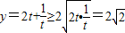 【答案】分析:令t=,則t>0,從而可得y=2 ,利用基本不等式可求函數(shù)的值域.