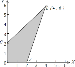 點評:本題考查的知識點是簡單的線性規(guī)劃,其中分析出目標(biāo)函數(shù)z=ax+by在x=4,y=6時取得最大值是解答的關(guān)鍵.