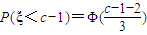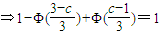 【答案】分析:畫正態(tài)曲線圖,由對(duì)稱性得c-1與c+1的中點(diǎn)是2,由中點(diǎn)坐標(biāo)公式得到c的值.