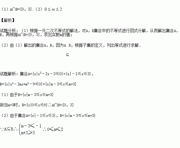 已知集合A={x|x2﹣2x﹣3≤0},B={x|x2﹣2mx+m2﹣9≤0},m∈R.