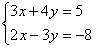 求經(jīng)過直線l1:3x+4y-5=0與直線l2:2x-3y+8=0的交點(diǎn)M,且與直線2x+y+5=0平行的直線方程。