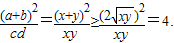 已知x>0,y>0,x,a,b,y成等差數(shù)列,x,c,d,y成等比數(shù)列,則