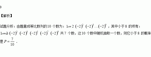 現(xiàn)有10個(gè)數(shù),它們能構(gòu)成一個(gè)以1為首項(xiàng),-2為公比的等比數(shù)列,若從這10個(gè)數(shù)中隨機(jī)抽取一個(gè)數(shù),則它小于8的概率是( )