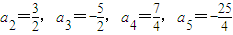 【答案】分析:(1)由數(shù)列{an}滿足:a1=1,an+1=,分別令n=2,3,4,5代入解出函數(shù)值即可;