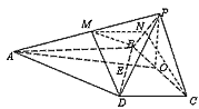 | (2)解:當(dāng)點(diǎn)M為PA的中點(diǎn)時(shí)符合題意。 下面證明這個(gè)結(jié)論: 連接BM、DM,由于AB=PB,則PA⊥BM, 又PA⊥BD,所以PA⊥平面BDM。 故當(dāng)點(diǎn)M為PA中點(diǎn)時(shí)PA⊥平面BDM。 (3)解:平面PAD⊥平面PAB, 下面證明這個(gè)結(jié)論: 取PB的中點(diǎn)N,連接CN, ∵PC=BC, ∴CN⊥PB, ① ∵AB⊥BC,且平面PBC⊥平面ABCD, ∴AB⊥平面PBC,AB ∴平面PBC⊥平面PAB, ② 由①,②可知,CN⊥平面PAB, 連接MN,則由MN∥AB∥CD,MN= ∴CN∥DM,DM⊥平面PAB。 |