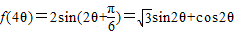 (2)銳角θ滿足,求出sinθ,sin2θ,cos2θ,化簡f(4θ),然后求f(4θ)的值.