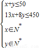 某出租車公司計(jì)劃用450萬(wàn)元購(gòu)買A型和B型兩款汽車投入營(yíng)運(yùn),購(gòu)買總量不超過50輛,其中購(gòu)買A型汽車需13萬(wàn)元/輛,購(gòu)買B型汽車需8萬(wàn)元/輛.假設(shè)公司第一年A型汽車的純利潤(rùn)為2萬(wàn)元/輛,B型汽車的純利潤(rùn)為1.5萬(wàn)元/輛,為使該公司第一年純利潤(rùn)最大,則需安排購(gòu)買