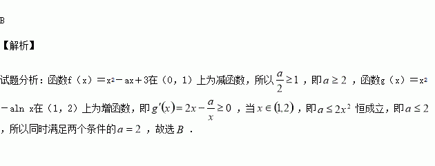 已知函數(shù)f(x)=x2-ax+3在(0,1)上為減函數(shù),函數(shù)g(x)=x2-aln x在(1,2)上為增函數(shù),則a的值等于( )