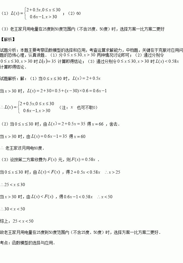 方案一:每戶每月收管理費(fèi)2元,月用電不超過(guò)30度時(shí),每度0.5元,超過(guò)30度時(shí),超過(guò)部分按每度0.6元收取.