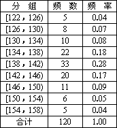 下表給出了從某校500名12歲的男生中用簡(jiǎn)單隨機(jī)抽樣得出的120人的身高資料(單位:厘米)