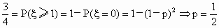 設(shè)隨機(jī)變量X~B(2,p),Y~B(4,p),若P(X≥1)=