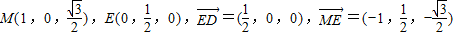 =(x,y,z)為平面MDE的一個法向量.則,令y=,則x=0,z=1,所以=(0,,1)