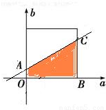 【答案】分析:本題利用幾何概型求解即可.在a-o-b坐標(biāo)系中,畫(huà)出f(1)>0對(duì)應(yīng) 的區(qū)域,和a、b都是在區(qū)間[0,4]內(nèi)表示的區(qū)域,計(jì)算它們的比值即得.