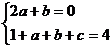 當(dāng)x=1時,切線l的斜率為3,可得2a+b=0. ①