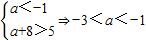 | A、-3<a<-1 | B、-3≤a≤-1 | C、a≤-3或a≥-1 | D、a<-3或a>-1 |