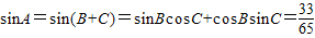【答案】分析:(Ⅰ)由cosB,cosC分別求得sinB和sinC,再通過sinA=sin(B+C),利用兩角和公式,進(jìn)而求得sinA.